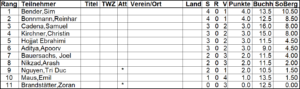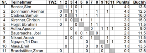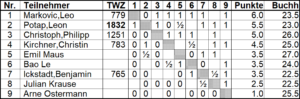 Die folgenden Ranglisten und Kreuztabellen zeigen die Ergebnisse: